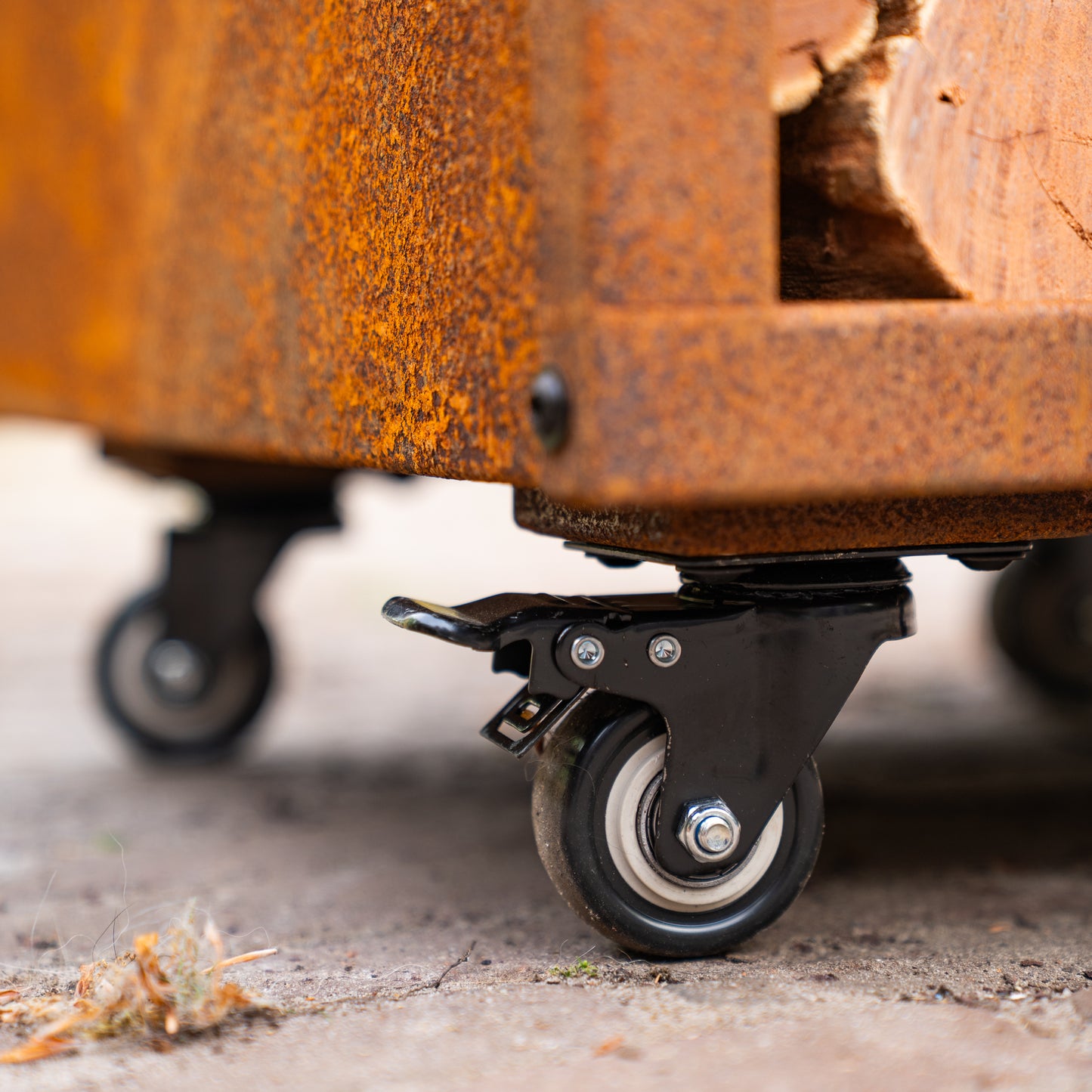 Avec une hauteur idéale de 103 cm, vous pouvez l'utiliser comme bol à feu. Avec sa forme et sa plaque de cuisson en métal de 70 cm d'épaisseur (8mm), il fournit beaucoup de chaleur et offre une belle vue depuis votre table à manger ou votre salon de jardin. Le rangement pratique du bois vous permet d'avoir toujours du bois à portée de main et il est également très esthétique.
