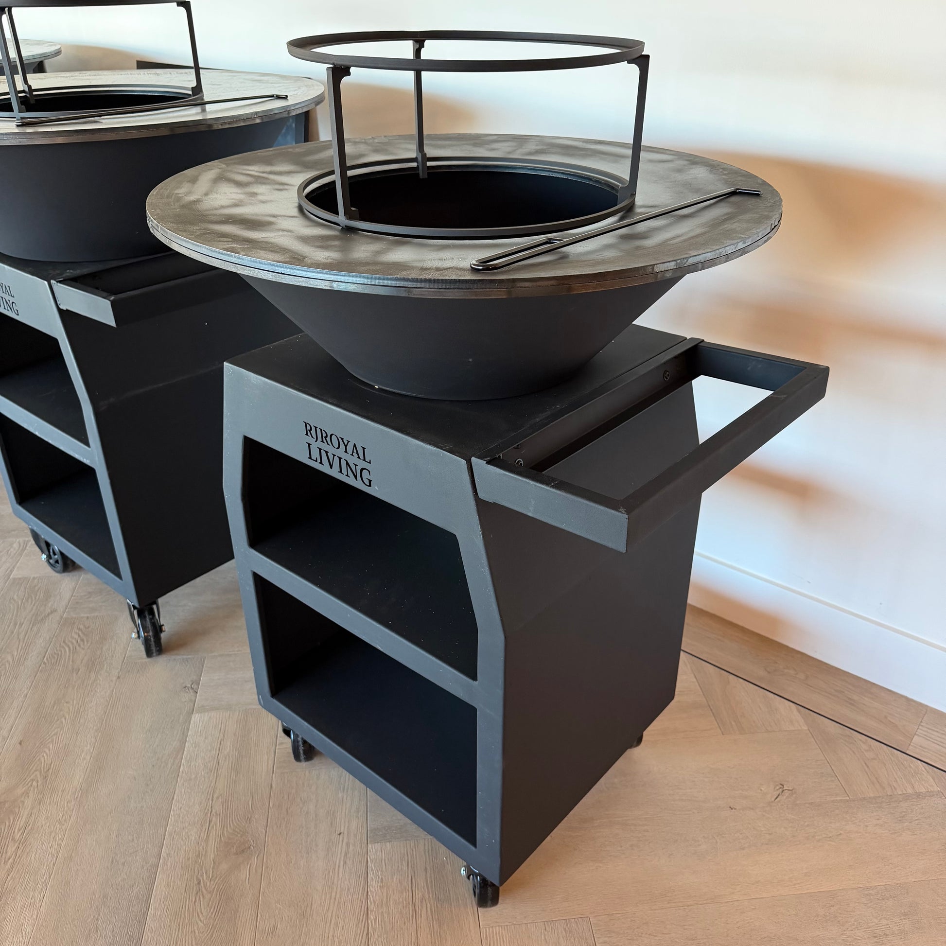 BBQ Plancha Grill Maestro Ø70cm Blackline - Avec grandes roues et compartiment à bois